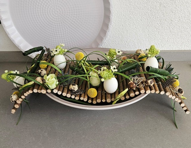 Welk paasbloemstuk we gaan maken, is nog niet bekend. De foto is van vorig jaar.